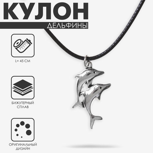 Цена за 2 шт. Кулон на шнурке «Дельфины», цвет чернёное серебро на чёрном шнурке, 45 см