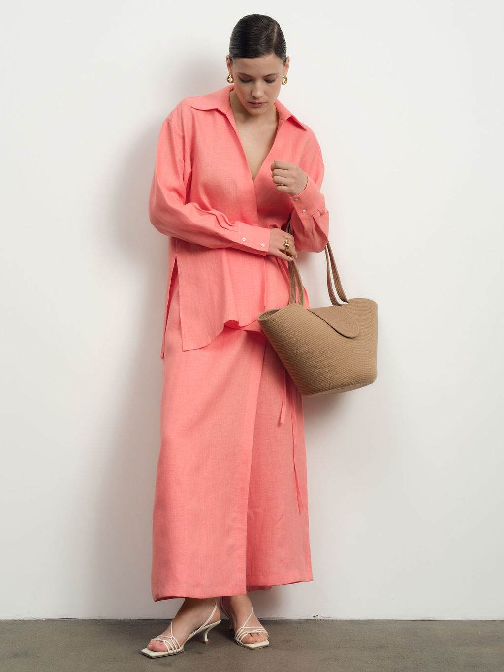 Юбка-брюки льняные коралловые элегантность и легкость