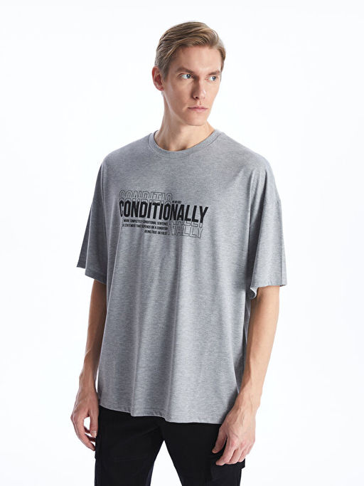 • Bisiklet Yaka K?sa Kollu Bask?l? Penye Erkek Ti??rt