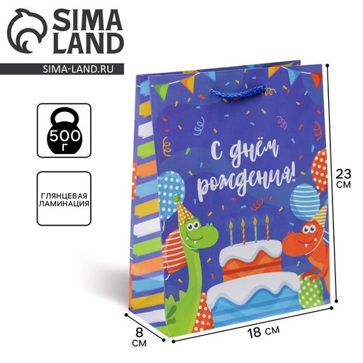 Плотность, г/м²: 128. Допустимый вес вложения, г: 500. Тематика: Динозавры. Тематика праздника: День рождения. Отделка пакета: Ламинация. Вид ручки: Ручка-шнур. Особенности: Без особенностей. Бесплатная доставка: Да. Наша разработка: Да. Размеры товара: 8/23/18. Примечание: Пакеты изготовлены из тонкой бумаги, поэтому на них могут появиться вмятины. Такая особенность не является браком..