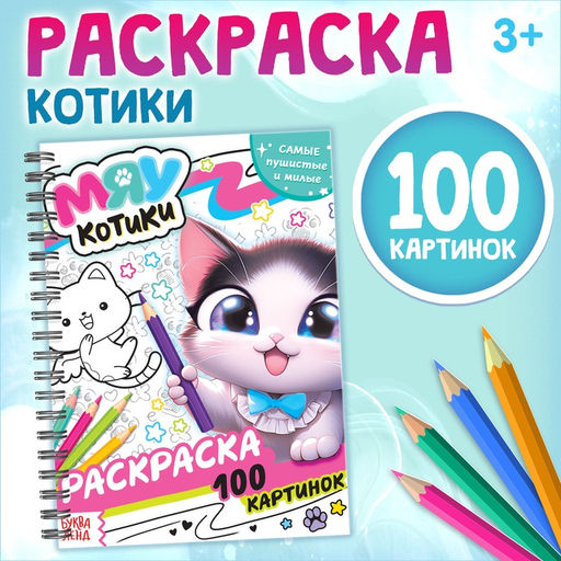 • Раскраска детская на спирали Мяу котики, 100 картинок