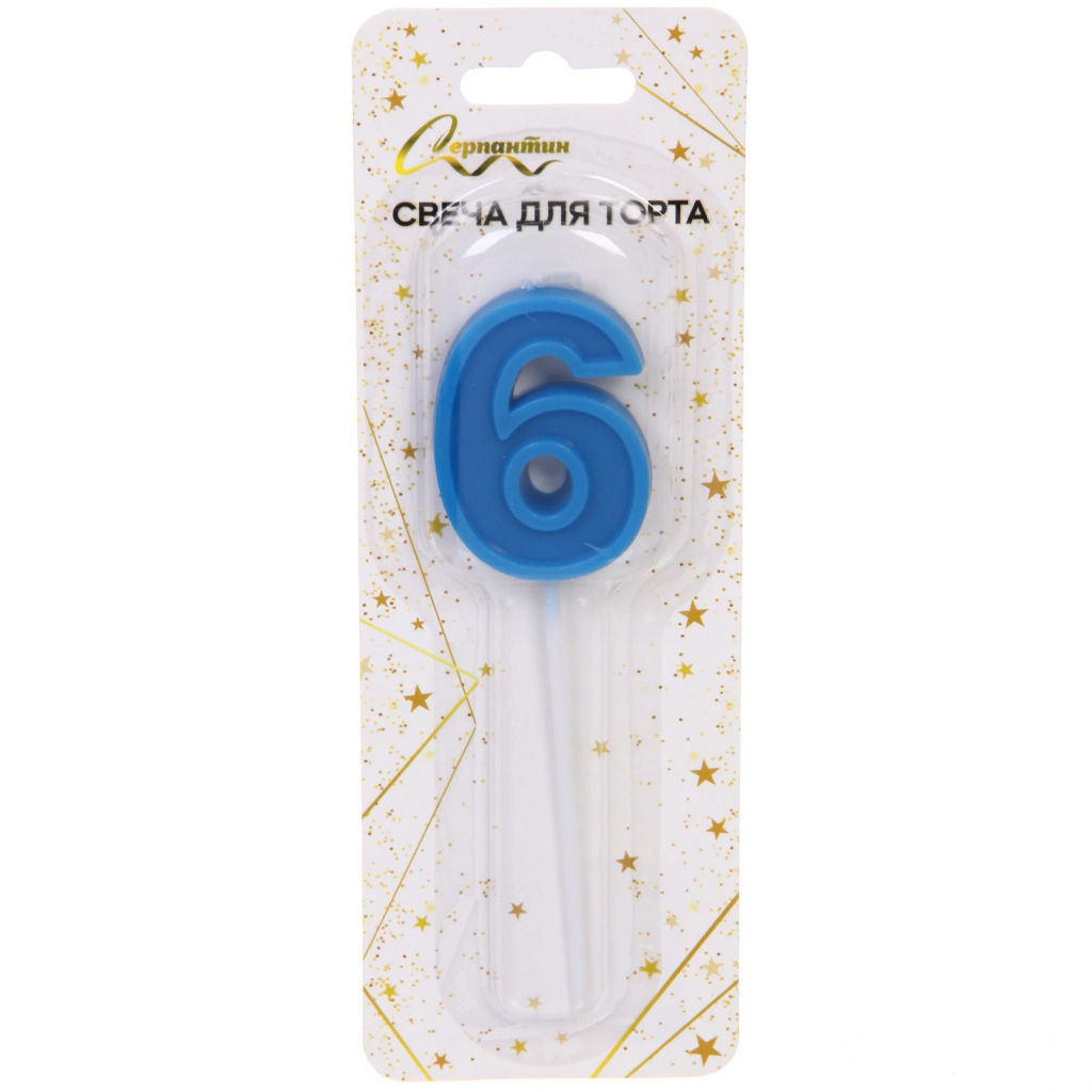Свеча для торта Цифра Веселый праздник "6" 12 см