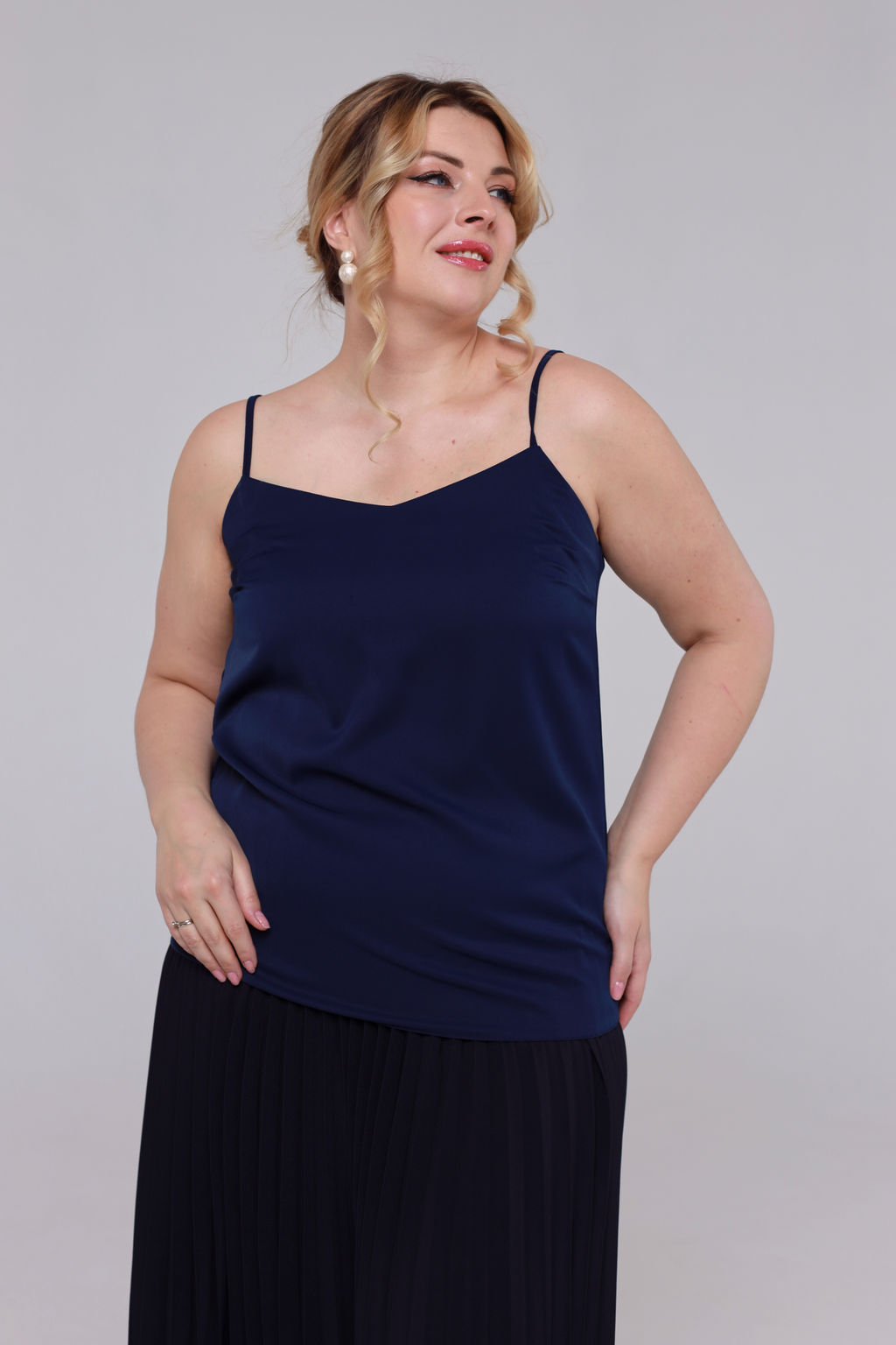 Классический однотонный топ свободного кроя из струящегося материала на регулируемых тонких бретелях. V-образный вырез добавляет модели женственности и романтизма. Модель можно комбинировать с юбками и брюками, также будет хорошей базой под пиджаки и жакеты. Топ позволяет выглядеть стильно при минимальных финансовых затратах.