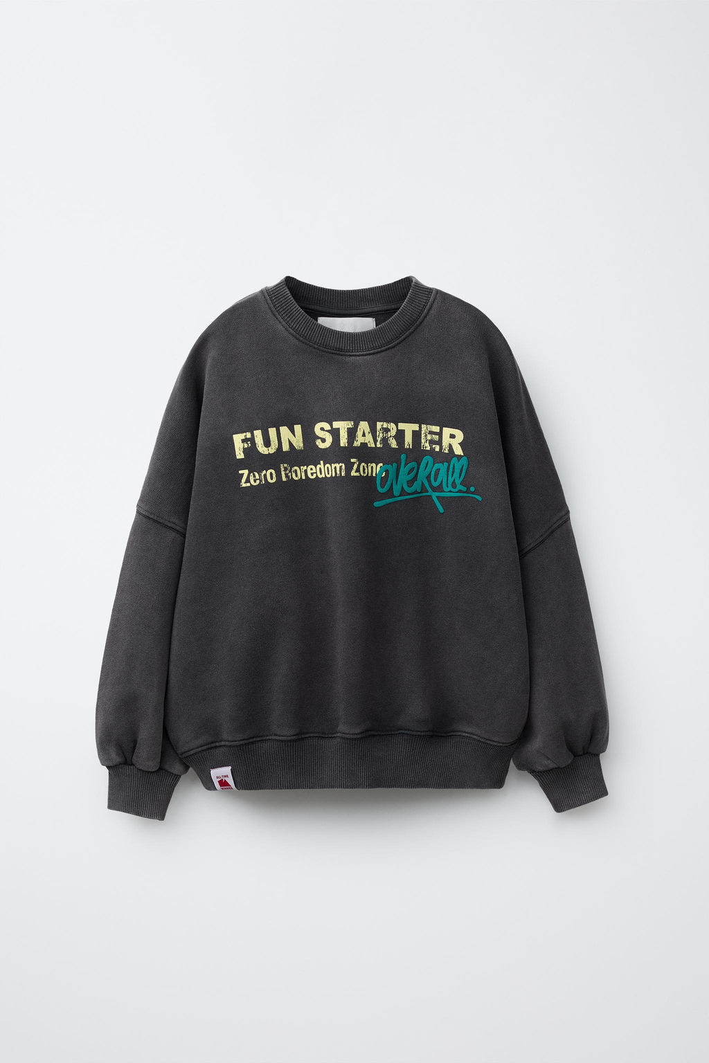 CAMISETA EFECTO LAVADO ESTAMPADO TEXTO / Gris antracita