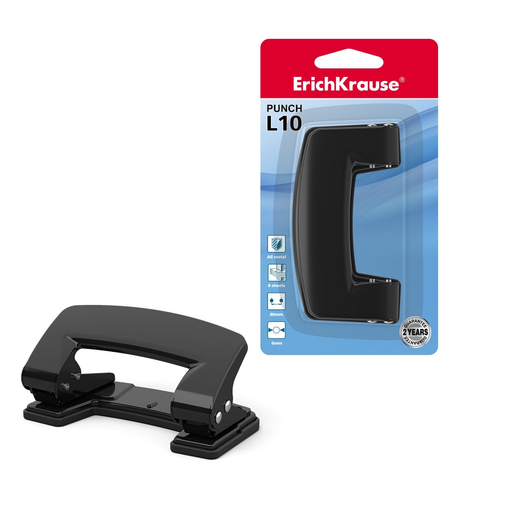 • АКЦИЯ Цена за 12 шт. Дырокол ErichKrause® L10 до 8 листов, ассорти (в блистере по 1 шт.)