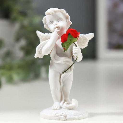 Сувенир полистоун "Ангелочек с красной розой" 8х4,5х3,5 см