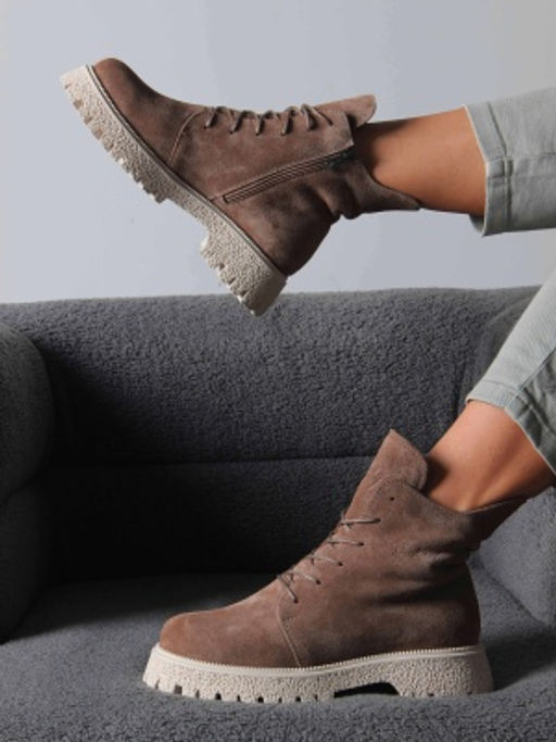 Ботинки 228.V.1541be. Коричневый капучино замша / Байка