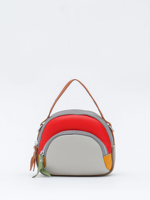 Сумка в стиле колор-блок, выполнена из натуральной кожи. Дополнена серебристой фурнитурой.  Данная модель закрывается на молнии. Носится в руке за встроенную ручку или на плече, съемный ремень регулируется по длине. Каркас полужесткий.