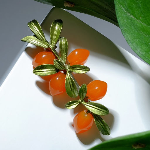 • Брошь «Облепиха», оранжево-зелёная в серебре