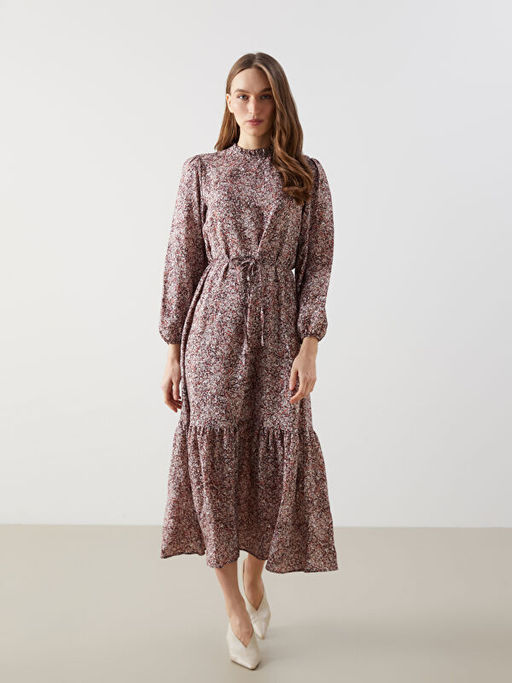 • Dik Yaka Desenli Kad?n Elbise