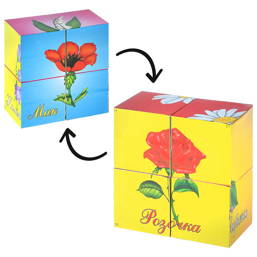 • В наборе 4 кубика с фрагментами 6 картинок.