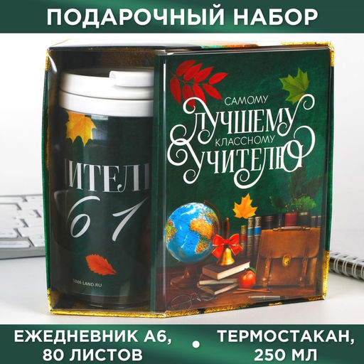 • Подарочный набор, ежедневник А6, 80 л.,термостакан 250 мл «Самому лучшему учителю»