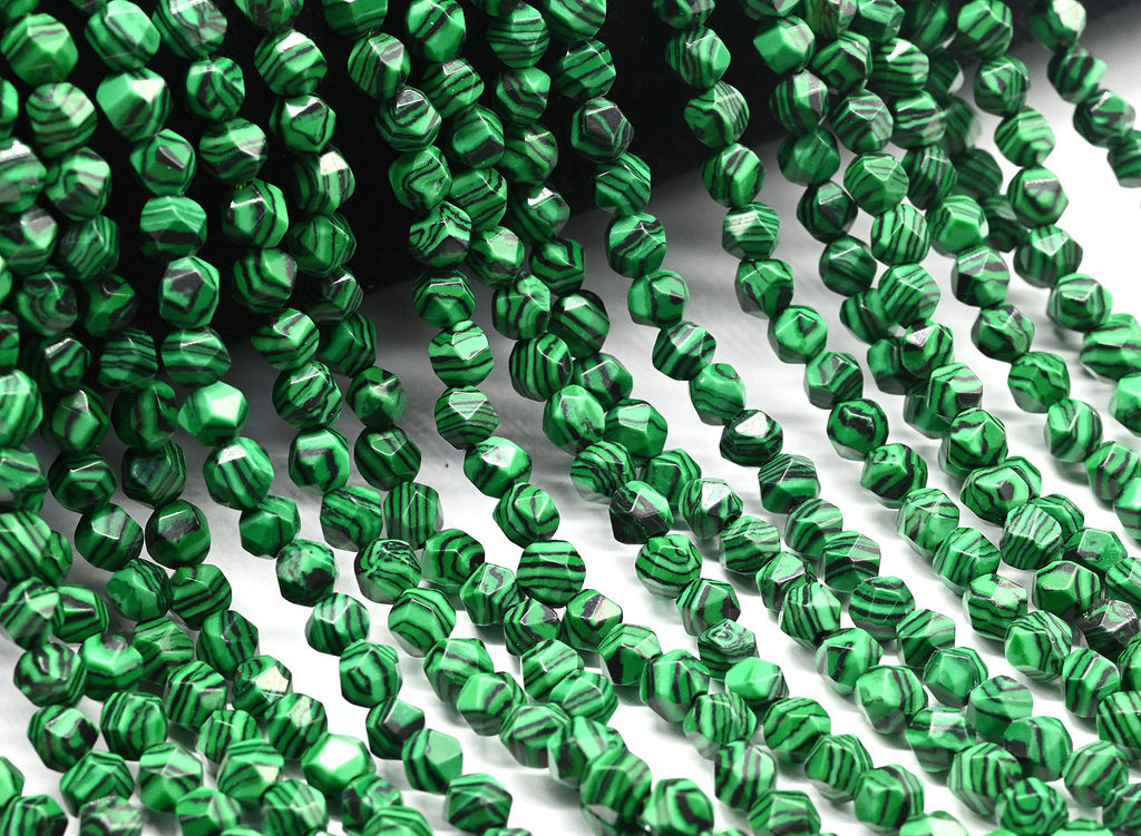 Бусины из малахита многогранник 5мм, 35,5см, 68 бусин Радуга камня