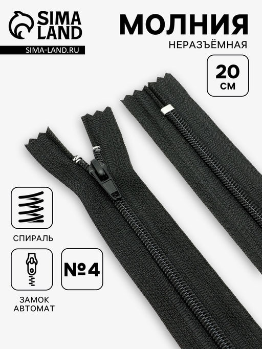 Цена за 10 шт. Молния «Спираль», №4, неразъёмная, брючная, замок автомат, 20 см, чёрная