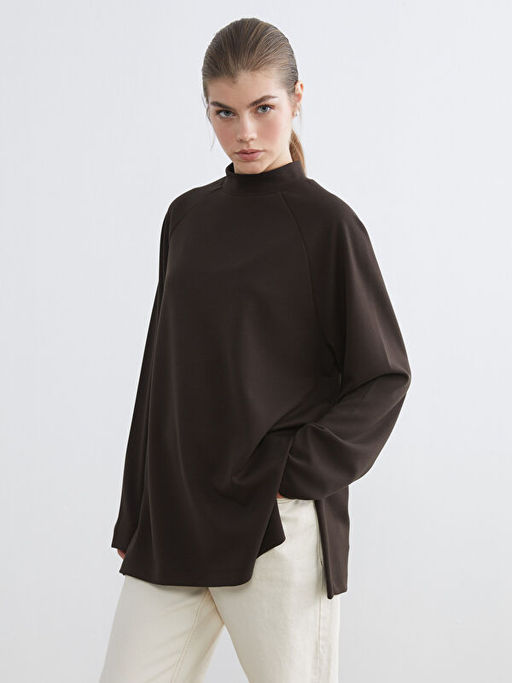 Dik Yaka Oversize Kad?n Sweatshirt Tunik