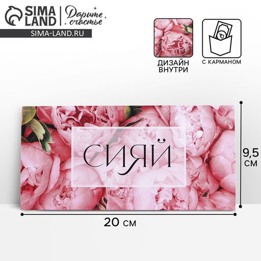 • Цена за 5 шт. Конверт подарочный с внутренним карманом «Сияй», цветы, 20 × 9,5 см