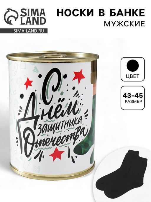 Носки мужские в банке «С Днём защитника Отечества», подарочные, чёрные, 43-45 р-р
