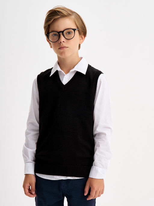 • Черный вязаный жилет для мальчика