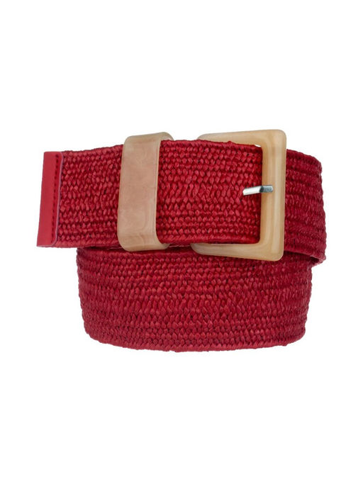 Стильный насыщенно-красный ремень-резинка из текстиля с пряжкой, имтирующей слоновую кость. Плетеная структура ремня позволяет застегнуть его в любом удобном месте, что в значительной степени увеличивает его практичность при ношении и позволяет отрегулировать для себя комфортный размер. Модель отлично сочетается с нейтральными рубашками, пиджаками, джинсами и брюками, разнообразит любой образ, не перегружая его.