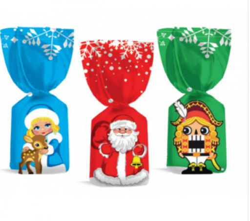 Конфеты «Cream Line» в шоколадной глазури с помадной начинкой со вкусом клубники («Снегурочка»), крем-шоколад («Дед Мороз»), миндаля («Щелкунчик»).