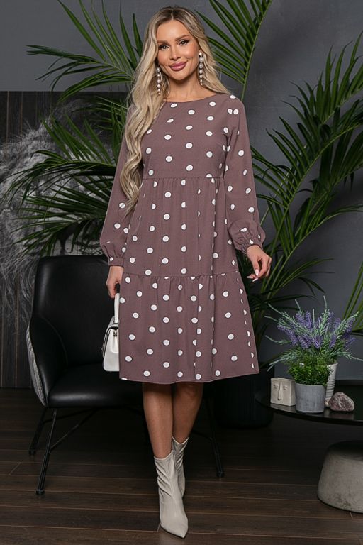 Платье из текстильного полотна свободного силуэта с двумя ярусами притачных воланов.