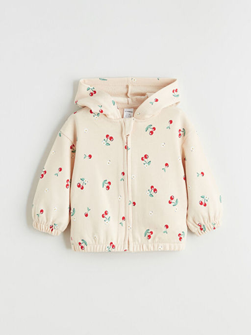 Kap??onlu Kiraz Bask?l? K?z Bebek Fermuarl? Sweatshirt