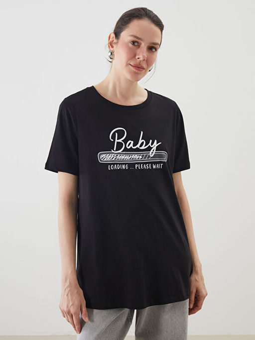 • Bisiklet Yaka Bask?l? Hamile Ti??rt