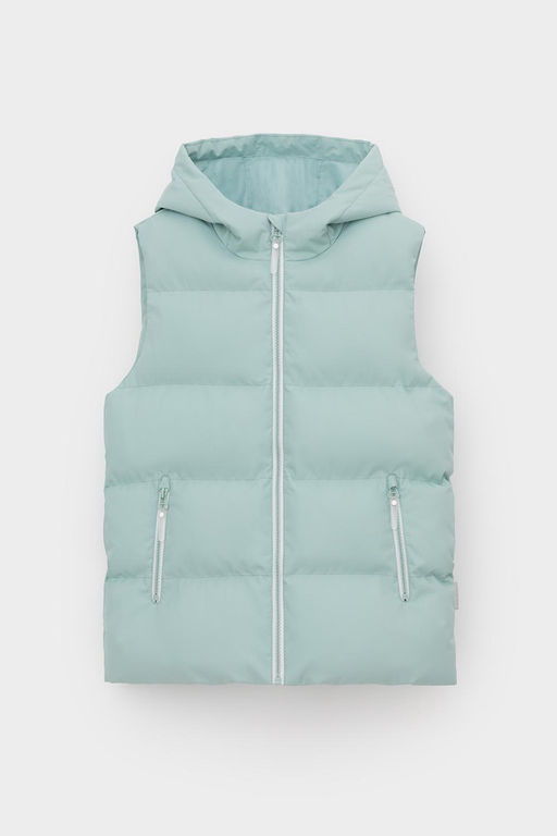 Стеганый жилет с капюшоном для девочки с утеплителем Fellex®: 120 г/м2. Выполнен из мембранной ткани с дополнительной тефлоновой обработкой. Данный вид обработки предохраняет изделие от загрязнения и лучше отводит влагу. Подклад из 100% полиэстра. Капюшон не снимается. Изделие застёгивается на молнию, предусмотрена защита подбородка. Два кармана по бокам застёгиваются на молнии. Во всех изделиях верхнего ассортимента для безопасности ребенка предусмотрены светоотражающие элементы.. Состав: верх: 80% полиэстер, 20% полиуретан; подклад: 100% полиэстер; Утеплитель: 100% полиэстер