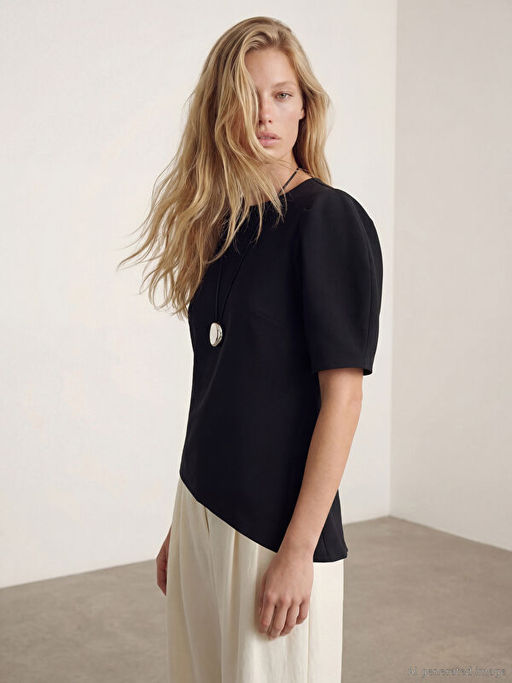 • Bisiklet Yaka Balon Kollu Asimetrik Bluz