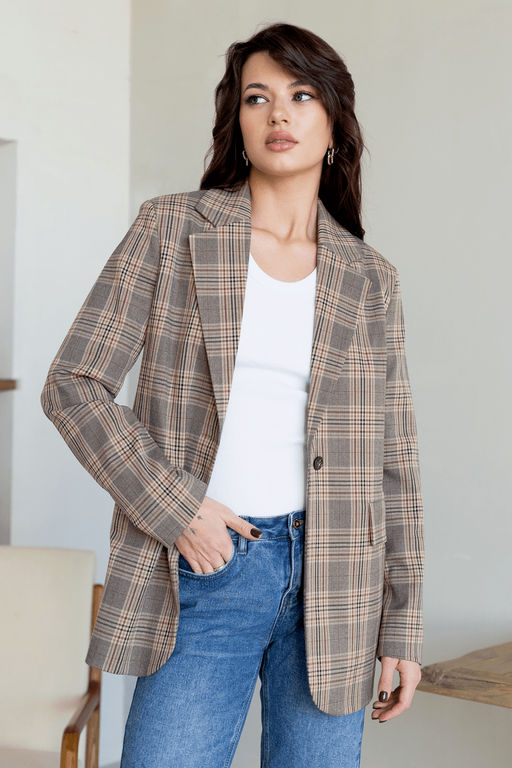 Актуальный жакет свободного кроя в клетку в стиле оверсайз.