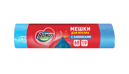 • BONUS пакеты д/мусора с завязками 60л*10шт HD 60*64см синие 13 мкм