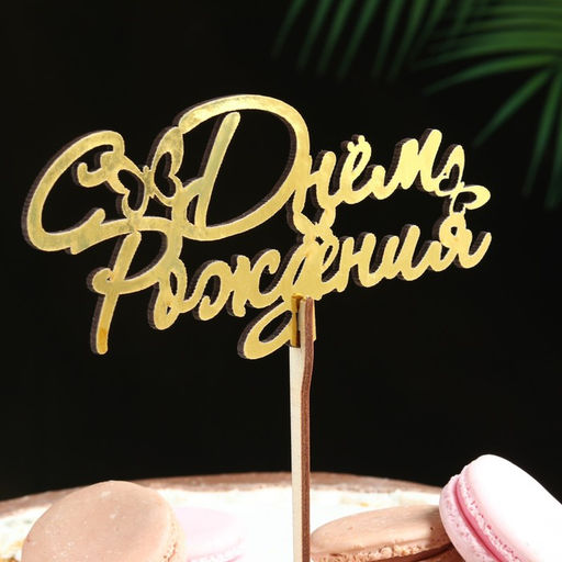 • Цена за 4 шт. Топпер для торта деревянный «С Днём Рождения», 14.3×7 см