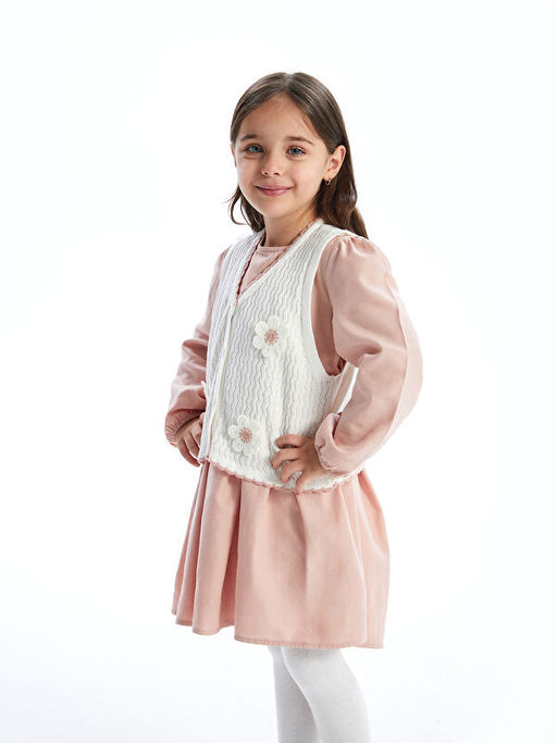 • Bisiklet Yaka K?z ?ocuk Triko Elbise ve Yelek 2li