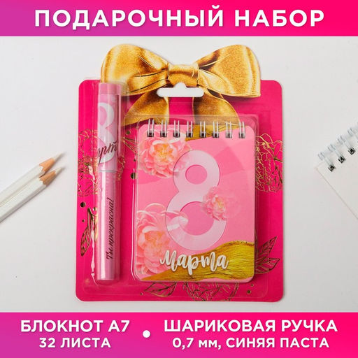 • Подарочный набор «Ты прекрасна. 8 марта»: блокнот и ручка пластик