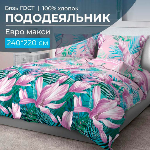 Пододеяльник большого размера Евромакси 240*220 см из бязи ГОСТ, плотностью ткани 140 г/м2. Вход для одеяла расположен внизу пододеяльника. Вам обязательно понравится эта плотная, добротная ткань, которая имеет длительный срок службы. Рисунки на ней смотрятся четко и выразительно. Ну и, конечно, у этой ткани абсолютно натуральный состав - хлопок 100 %. Она очень комфортна, экологична, не деформируется, хорошо впитывает влагу, позволяет коже дышать, что способствует вашему полноценному отдыху! Мы являемся производителями, сами следим за выпускаемой продукцией и гарантируем высокое качество! Наши изделия произведены в Ивановской области, имеют сертификацию качества "ГОСТ 31307-2005", а также зарегистрированы в государственной системе маркировки "Честный знак". -- Характеристики -- Вес: 1380 кг Размерность пододеяльника: Евро макси Размер пододеяльника: 240x220 Замок пододеяльника: С прорезью Длина прорези (см): 70 см Ткань: Бязь ГОСТ Состав: 100 % хлопок Плотность: 140 г/м2 Плотность плетения: Высокая Отделка: Без отделки Режим стирки: При 40 градусах Цвет: Фиолетовый Расцветка: Летиция Вид принта: Цветы Целевая аудитория: Взрослая