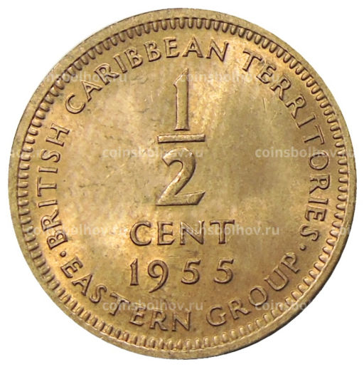 • Монета 1/2 цента 1955 года Британские Восточные Карибы