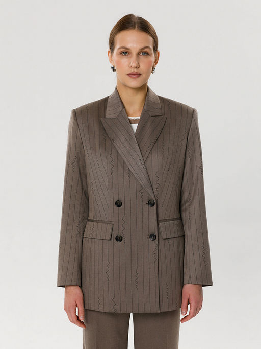 Жакет в полоску.. Модель прилегающего силуэта, с двубортной застёжкой на петли и пуговицы, на подкладе. Перед с рельефами и прорезными карманами в рамку с клапаном. Спинка с рельефами и средним швом. Воротник пиджачный. По низу рукава обработана отлетная шлица с декоративными пуговицами и петлями.Торговая марка: Stilla