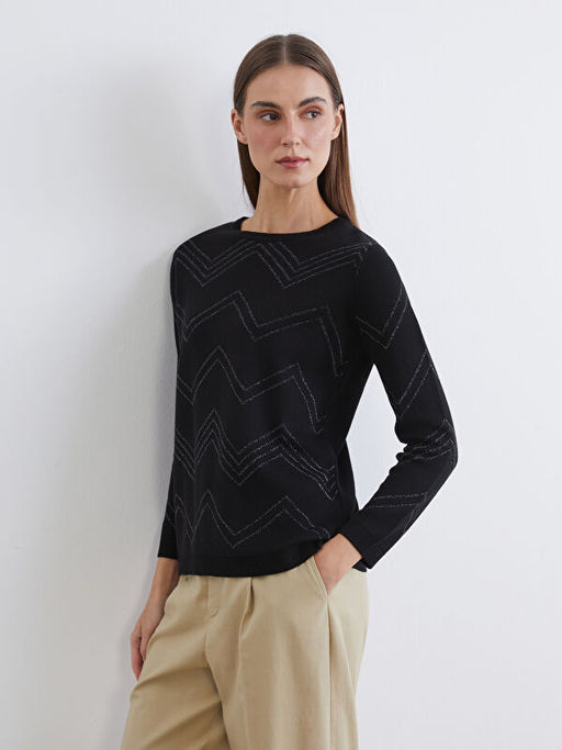 • Bisiklet Yaka Desenli Kad?n Triko Kazak