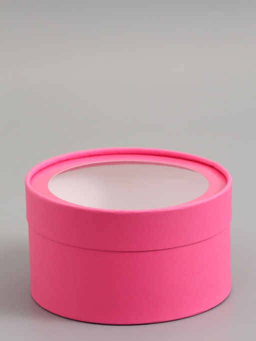 • Подарочная коробка круглая, сливовая, завальцованная с окном, 18×10 см