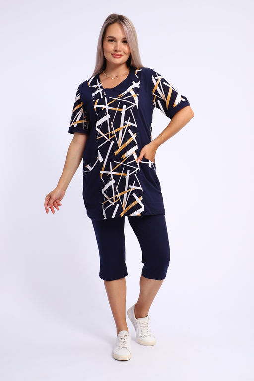 Костюм женский туника и бриджи. Туника полуприлегающего силуэта с короткими рукавами и карманами. Бриджи на резинке.