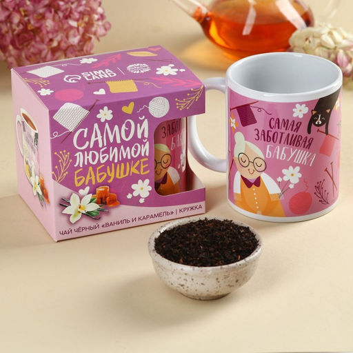 • Подарочный набор Любимой бабушке: чай апельсин с шоколадом, 50 г., кружка 300 мл