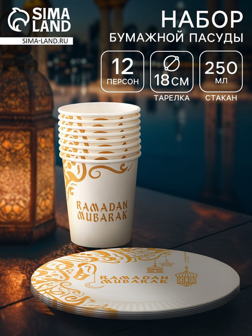 МП Набор бумжаной посуды «Ramadan Mubarak», белый, 12 персон