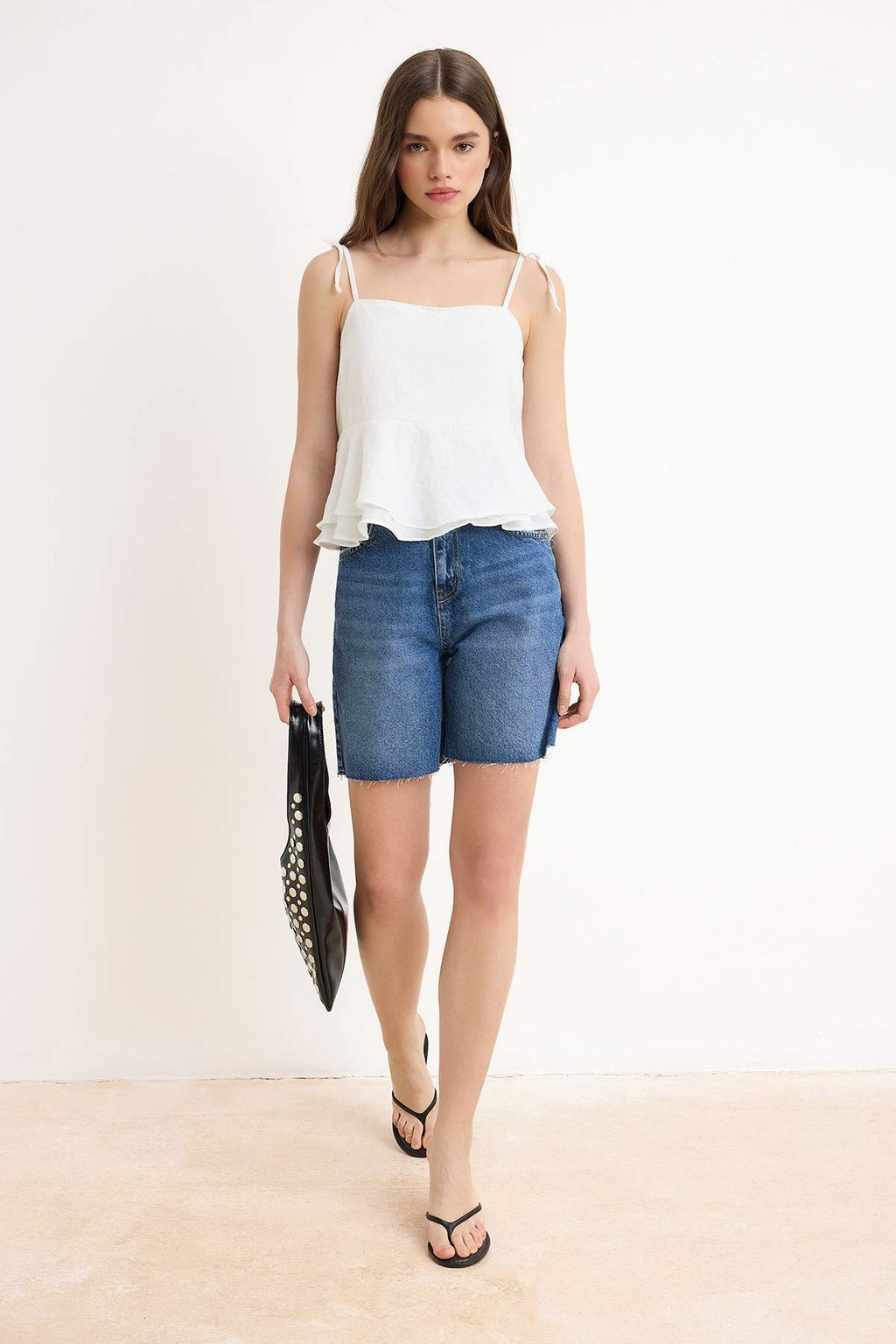 • Beyaz Ask?lar? Baglama Detayl? S?rt? Gipeli Dokuma Bluz TWOSS26BZ00413