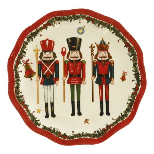 Тарелка с чудесным Рождественским принтом станет прекрасным украшением Вашего праздничного стола. Тарелка из серии посуды "Щелкунчик", изготовлена из керамики.
