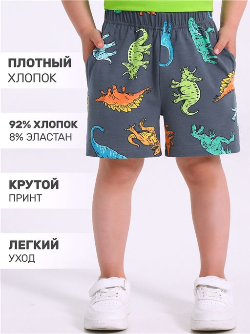 Уценка -70% шорты,хлопок 92% + лайкра 8%,кулир с лайкрой / хлопок 92% + лайкра 8%,- / цветные фигурки динозавров на темно-сером / - / - / - / -,Шорты для мальчика выполнены из кулира - легкого хлопкового набивного полотна с лайкрой. Изделие длиной до середины бедра, на эластичном поясе и удобными карманами. Уход: только машинная стирка (руками не стирать!) при температуре 40 градусов, без предварительного замачивания.