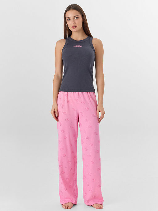 Женский домашний комплект с надписью Люблю, а не сражаюсь это ваше настроение для тихих, уютных вечеров. Он состоит из облегающего топа и свободных брюк, выполненных из мягкой хлопковой рибаны. Эта ткань дарит коже лёгкую, приятную прохладу и позволяет ей дышать, обеспечивая комфорт в течение всего дня.