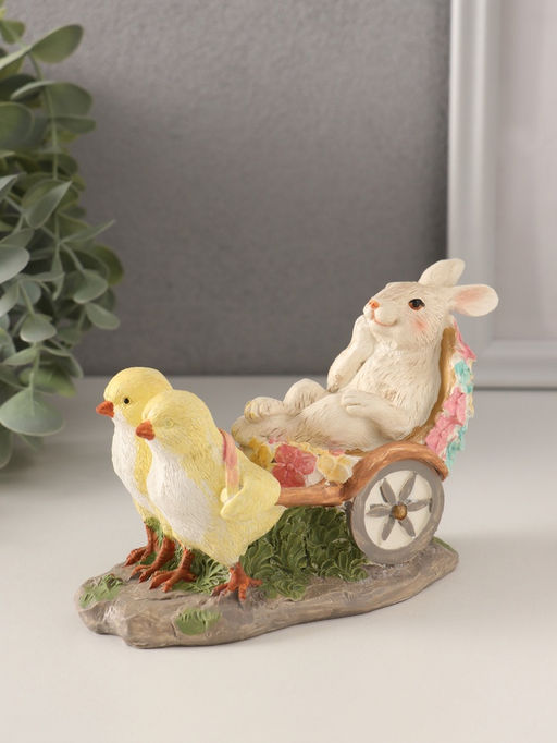• Фигурка полистоун Цыплята везут кролика в колеснице, 14.5?7?9 см