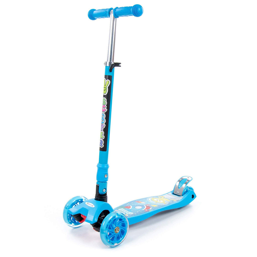 Самокат детский 57х25,7х75см, полипропилен, складная ручка, светящиеся колеса, с наклейкой V1, голубой (Китай)