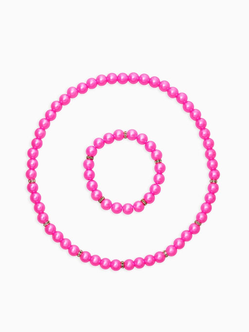 Цена за 2 шт. Набор детский «Выбражулька» 2 предмета: бусы, браслет, жемчуг стразы, цвет ярко-розовый