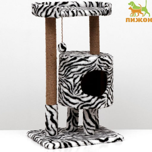 • Домик для кошек с когтеточкой «Круглый с площадкой», 52×52×95 см, зебра